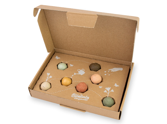 In deze Blossombs giftbox zitten 7 gekleurde bloembommetjes. Hiermee creëer je een ware bloemenzee en voedselparadijs voor bijen en vlinders. Perfect voor in jouw tuin en balkon.