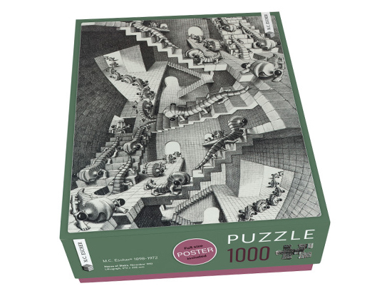 Deze puzzel van 1.000 stukjes toont het kunstwerk House of Starirs van Escher. Een mooie uitdaging voor jong en oud. Ideaal voor een ontspannen moment aan tafel.