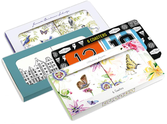Met deze onderzetterset bescherm je je tafel en heb je wat moois om naar te kijken. De onderzetters zijn groot genoeg voor een glas of mok maar ook voor een theepot of fles. Als je wint krijg je de set ‘Blauwe regen’, ‘Hibiscus’, ‘Het rugnummer’, ‘Canal Houses’ of ‘Passion for Butterflies’. Elke set bestaat uit 6 verschillende onderzetters.